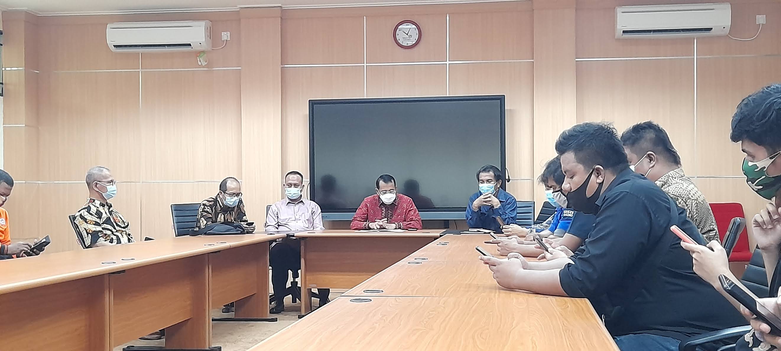 Dalam kegiatan jumpa pers dengan awak media Rektor UNP Prof. Ganefri, Ph.D menyampaikan tingkat ketidakhadiran peserta sampai hari terakhir pelaksanaan UTBK di Panlok 142 UNP tercatat 8,7%, Kata Penanggung jawab UTBK Panlok 142 UNP dihadapan para wartawan dari berbagai media di Ruang Pertemuan Gedung PPG Kampus UNP Air Tawar Padang, Sabtu/ 1 Mei 2021.